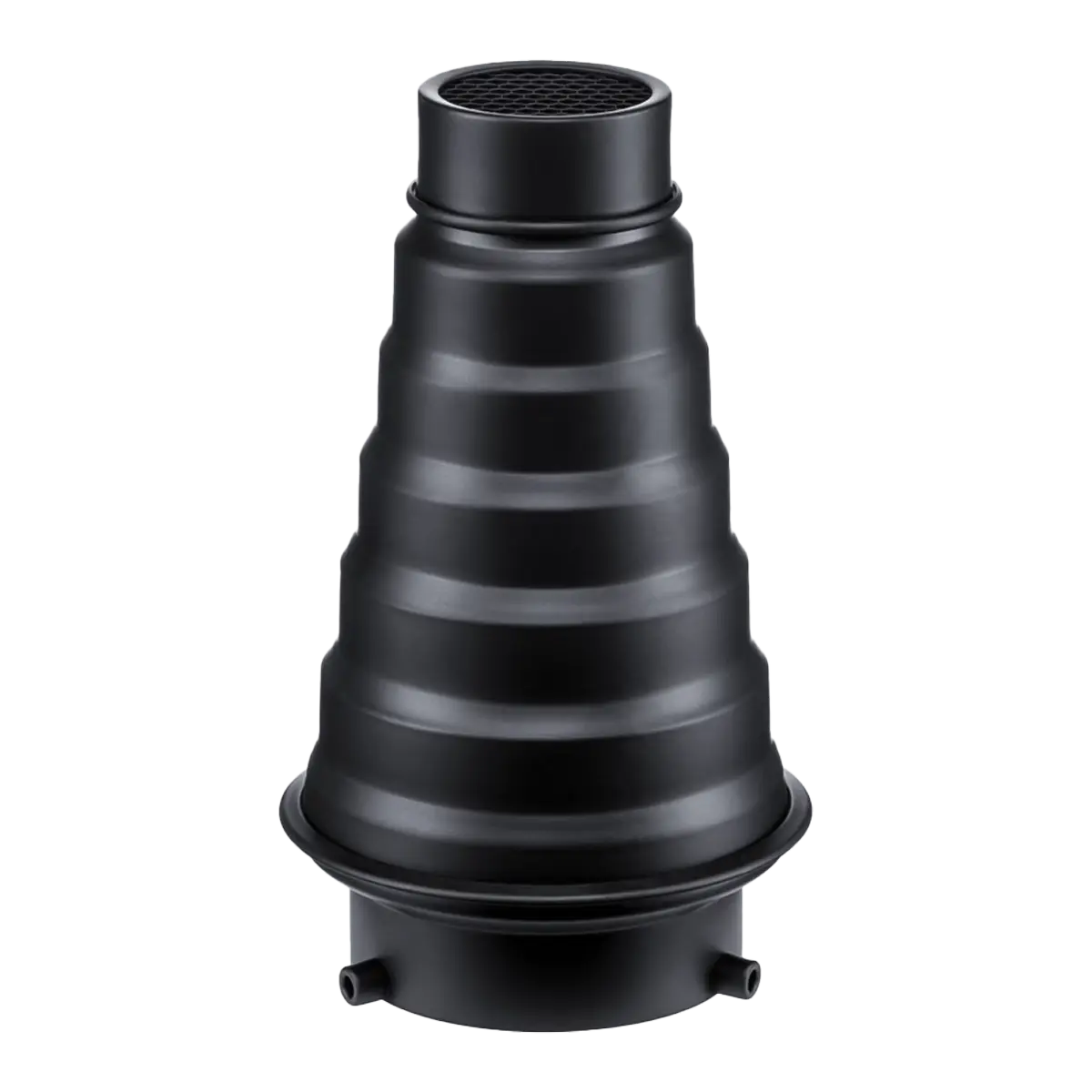 Unicorn Films offers the Godox Snoot (SN-01) to turn Bowens‑mount strobes and LED COBs into focused spot sources. The conical design concentrates output into a controlled, circular beam with a natural falloff ideal for hair lights, crisp edge accents, background pools, and product highlights where spill control and separation matter.